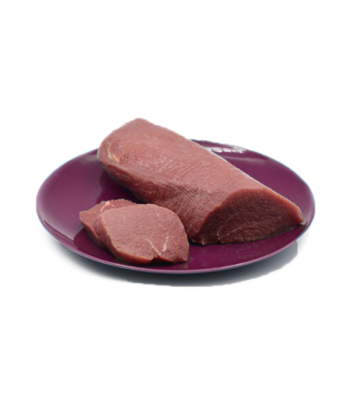 The eye of round (eye round) is an extremely lean small roast cut of the bottom round of the beef round primal cut. It is very affordable and has good flavor, but is not very tender. It is best cooked slowly (roasted or braised) & cut very thinly across the grain. It can also be used for inexpensive steak dishes if cut thinly & thoroughly tenderized.